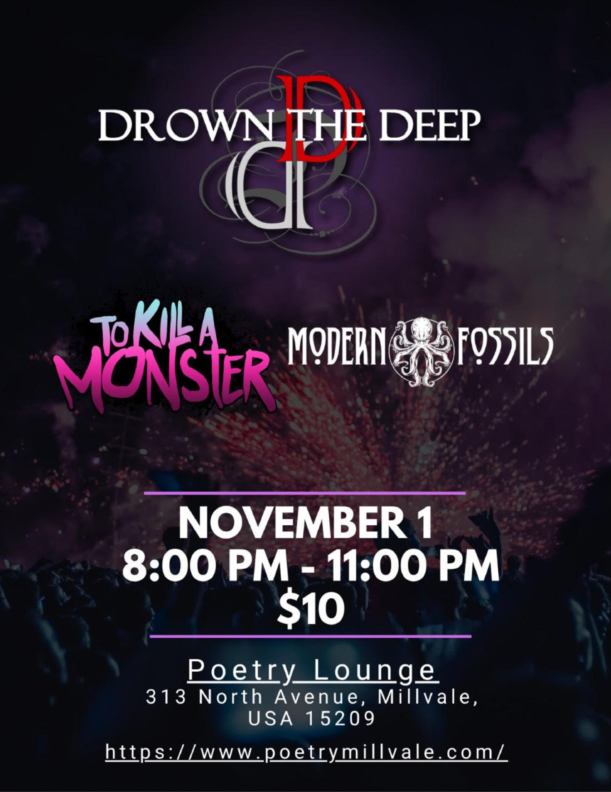 We had such an epic time with To Kill A Monster last year we couldn’t wait to bring them to Pittsburgh! Join us for an unforgettable night as Columbus-based To Kill A Monster team up with Pittsburgh’s own Drown the Deep and Modern Fossils at Poetry Lounge in Millvale.